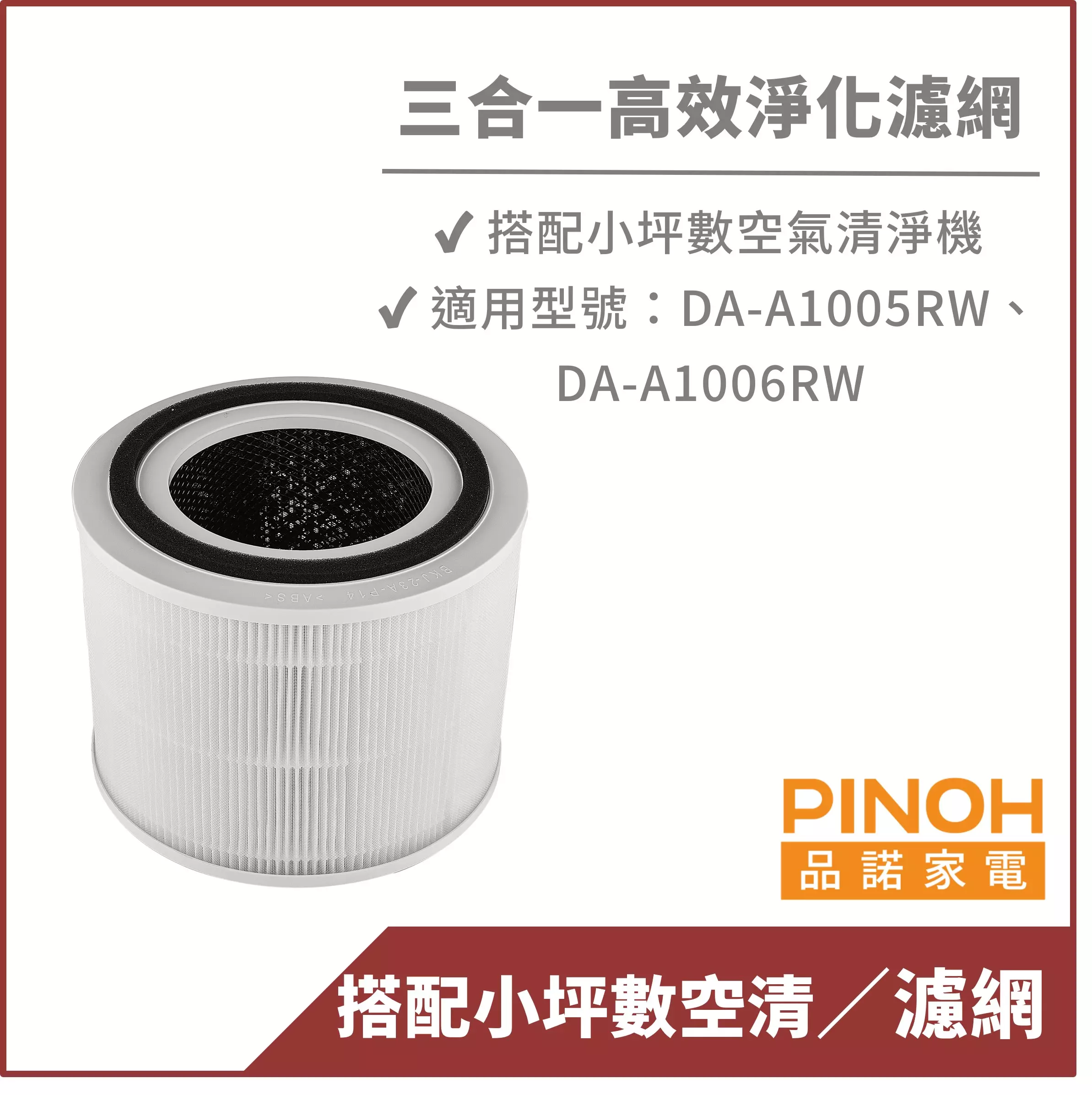 【PINOH品諾】小坪數空氣清淨機 三合一高效淨化濾網