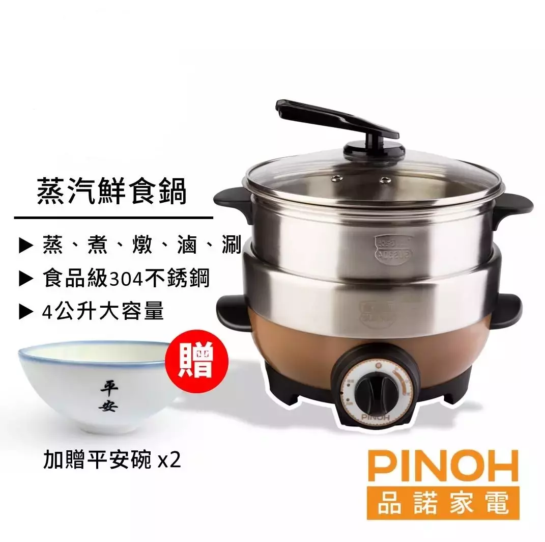 【PINOH品諾】蒸汽鮮食鍋/蒸氣火鍋(新品)-【買就送平安碗x2】